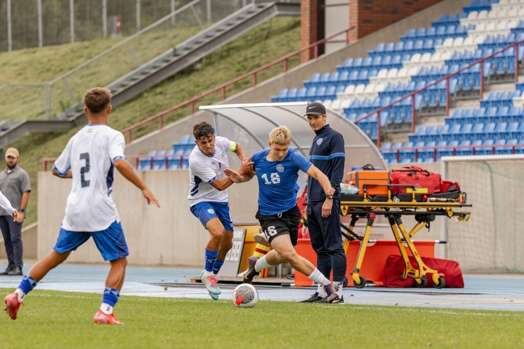 Pildil U19 koondis aastal 2025, tagaplaanil peatreener Siim Valtna. Foto: Marleen Mälk